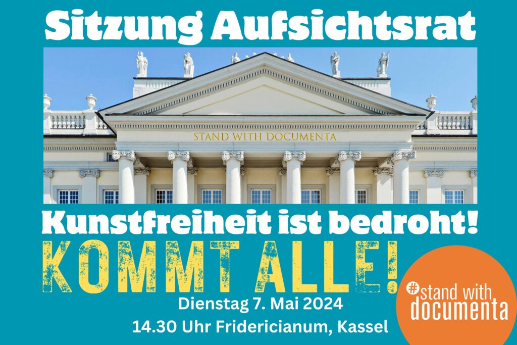 Am morgigen Dienstag, 7. Mai um 15 Uhr kommt im Fridericianum der Aufsichtsrat der documenta gGmbH zusammen, um über die Codes of Conduct und weitere Organisationsentscheidungen aus dem sog. METRUM Gutachten zu befinden. Die Initiative #standwithdocumenta ist ab 14:30 Uhr vor Ort!
